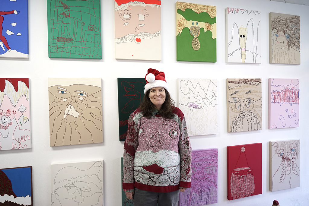 When Hakim asked me to do a show at Soloway last year, I immediately wanted to do a Santa show and that desire intensified when Manal said it was a stupid and terrible idea. I figured that we would still be in the pandemic and the dysfunction of having such a show in January and February would make sense because time has stretched and folded these past two years. I envisioned it as a good way to do a holiday party and see people I haven’t seen while spreading much needed cheer.