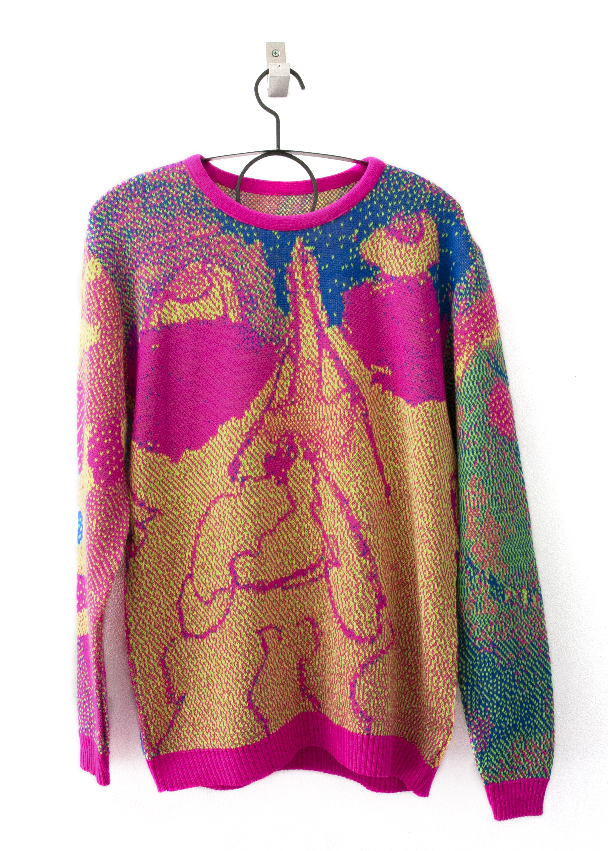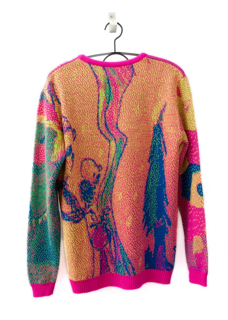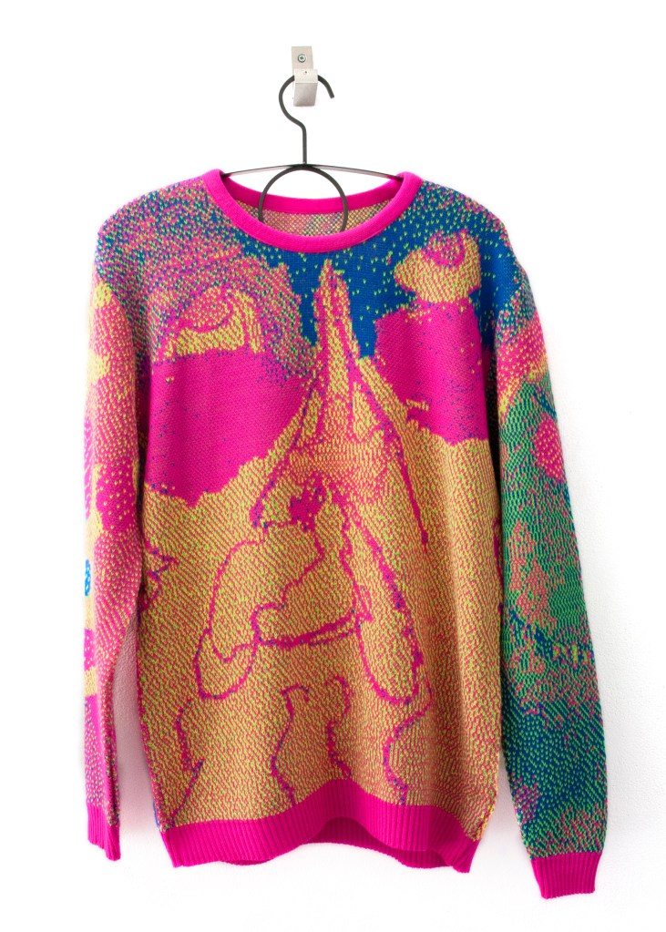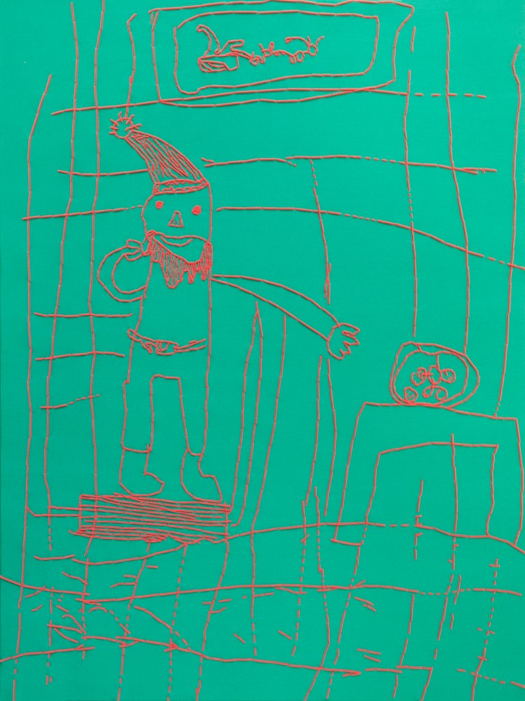 If Carl Jung misgendered me, she would probably tell me that my animus was Santa. Santanimus lives inside of me. Santa is my destiny. Challenging normative standards of decency and taste through craft and excess, HOs in This House, is a queer fever dream that celebrates the best of what Christmas has to offer without the psychosis of family. Start the new year right! One month behind! Who’s really counting anyway? Embroidered poor-traits of employee of the month mall Santas gather for Santa therapy. Charred cookies are strange attractors at the end of time. Trompe l’oeil casts of candies serve toppings so convincingly that visitors will ponder ‘how are those preserved?’ because they can’t read a materials list. Amanita muscaria junkie reindeers fly and slouch in a psychedelic stupor. Peppermint spiral t-shirts are the perfect breath-mint your body needs to start the new year fresh.